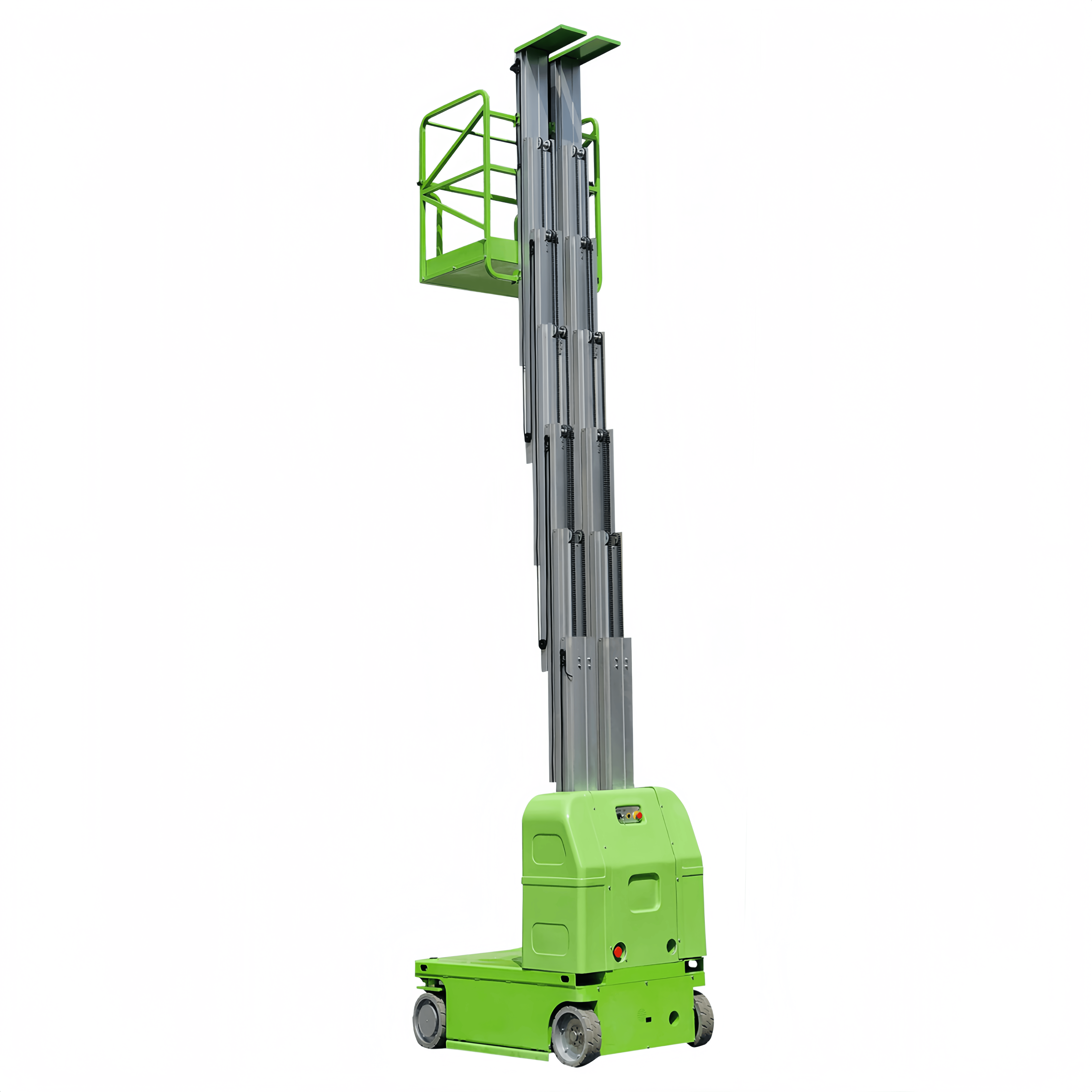 Green 9m Double Mast Self Propelled Vertical Lift With Hydraulic Turning Wheel