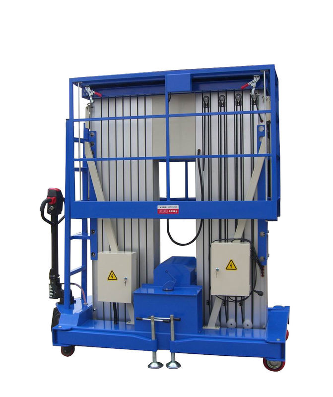 12 Meters Double Mast Mobile Aluminum Aerial Work Platform with 200Kg Loading Capacity and Motorized Device
