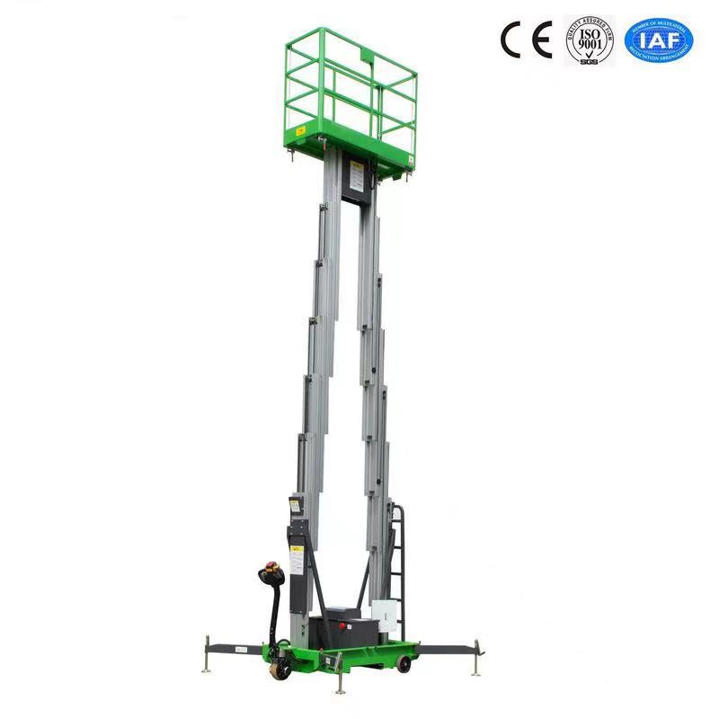 12m Hydraulic Lift Platform Aluminum Aerial Lift Double Mast 200Kg With Motorized Device