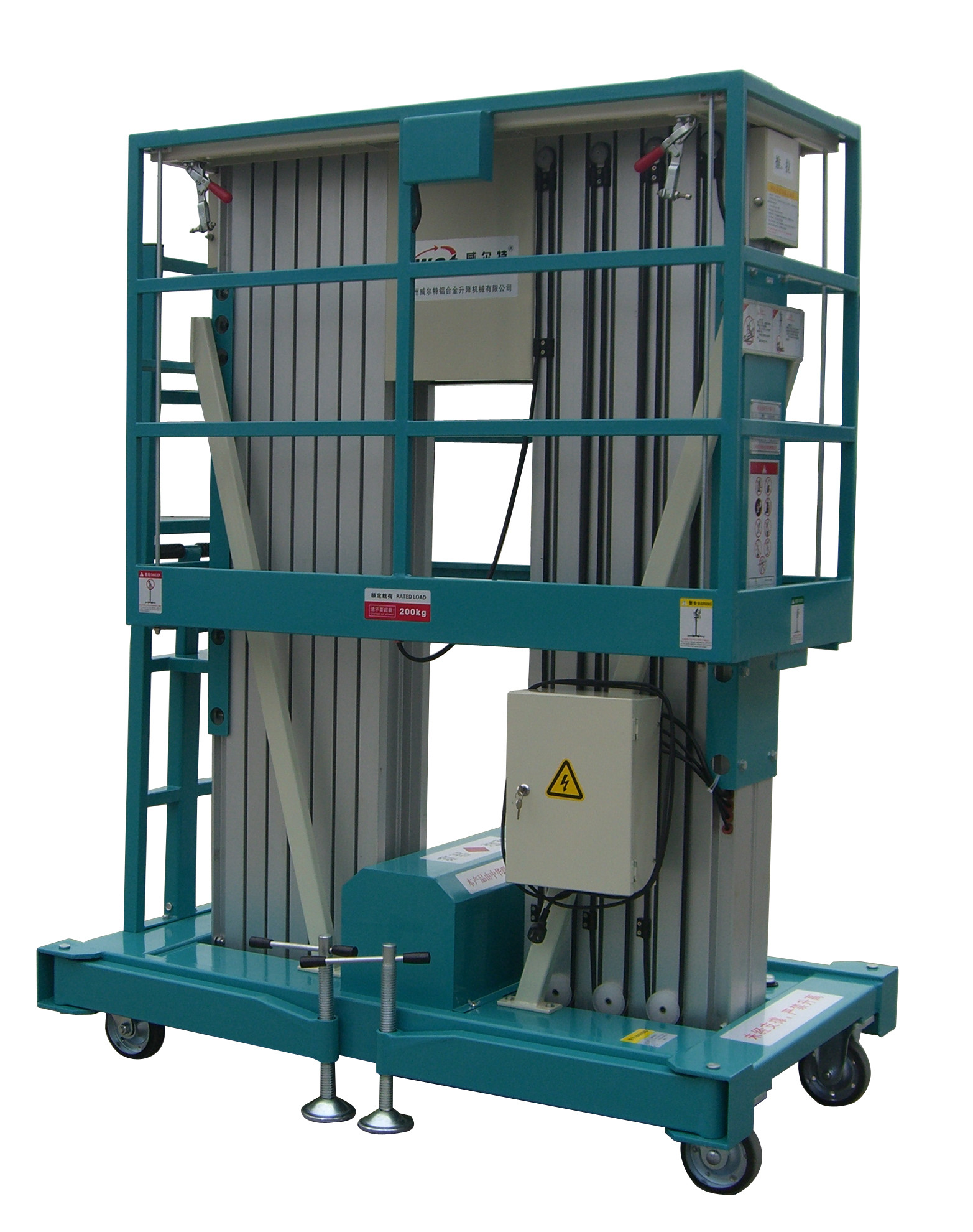 It is mainly used for the installation and maintenance of the narrow spaces such as star hotels, modern workshops, business hall, hotels, lobby, restaurant, railway stations, exhibition hall and shopping malls, it is a good helper for the equipment maintenance, paint decoration; Easily going through the regular doors and elevators, of low energy consumption, no pollution, no damage to the grounds. The lifting height ranges from 6m to 12m and lifting capacity is 200kg.The power sources could be 220V, 380V or chargeable battery.