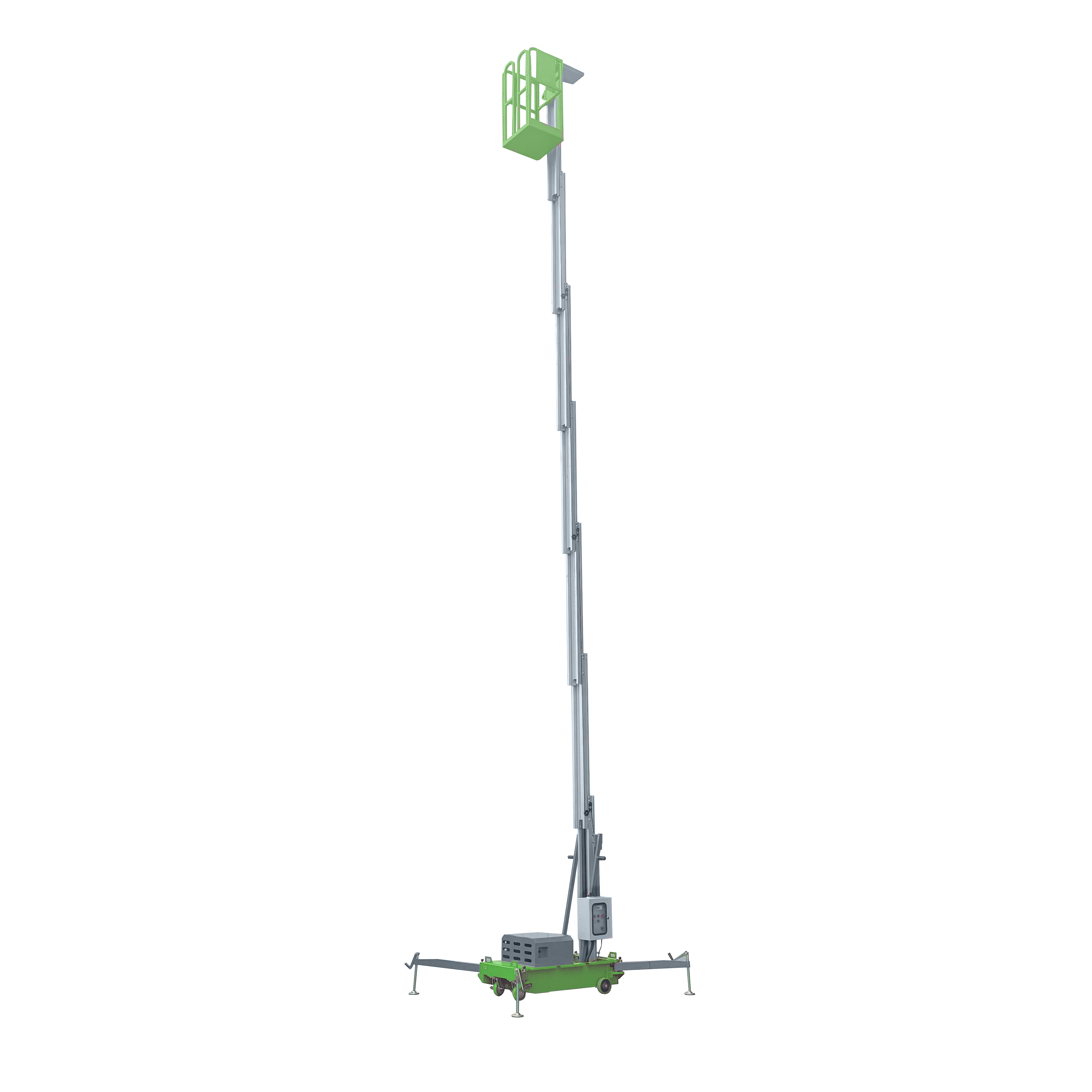 The lifting height ranges from 4m to 22m for different mast Aluminum Aerial Work Platform and the loading capacity varies from 130Kg to 300Kg.