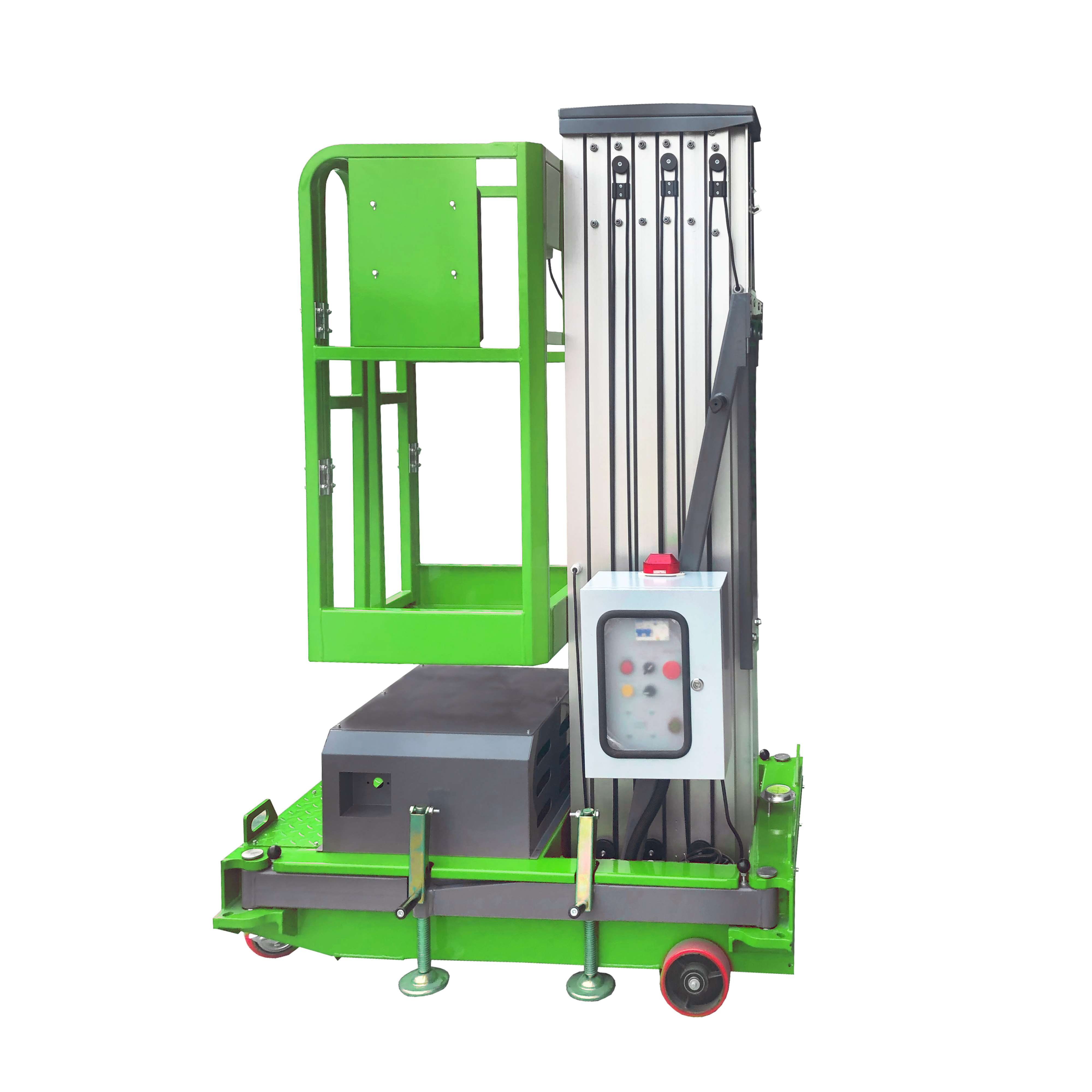 By the mast quantity: single mast, double mast, triple mast, quadruple mast and six masts (four plus two) are ranked in the product range of man pushing around aerial work platform