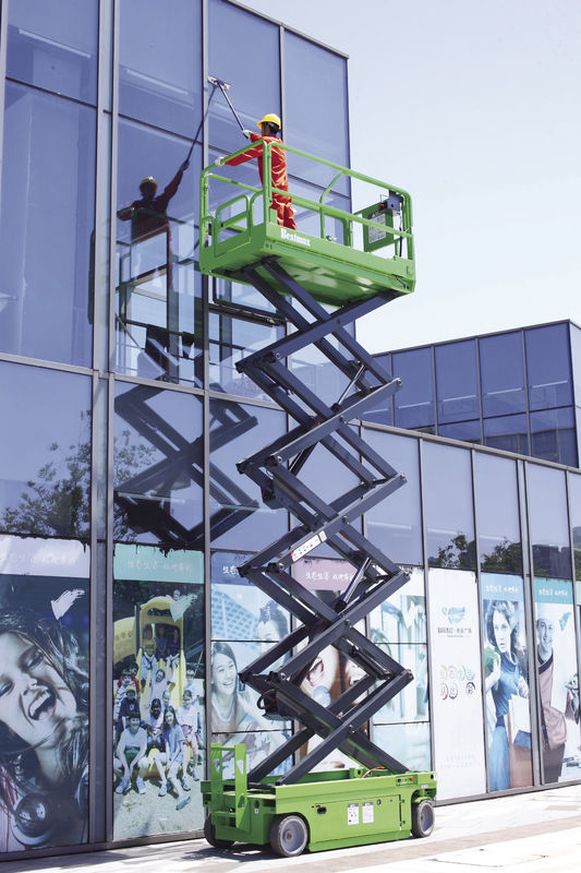 Bestmax Self-propelled Electric Scissor Lift (DC motor driving) has excellent structure, smooth driving, fater speed, lower noise, friendly to environment, deeply loved by users who always work outdoor to provide you with a flexible mobility, operability. It is with tough and rigid wheels to travel through uneven and rough surface. Whether indoors and outdoors it can be used with traceless tire. It is unique in carrying capacity and wide platform that can bring more workers and tool set. It can greatly improve the working efficiency to assist finish various aerial work tasks in different situations as it can travel in any status whether lifted or stowed. With no human power needed to move it, it can be operated by one single to control on the platform, smart, flexible, quick.
